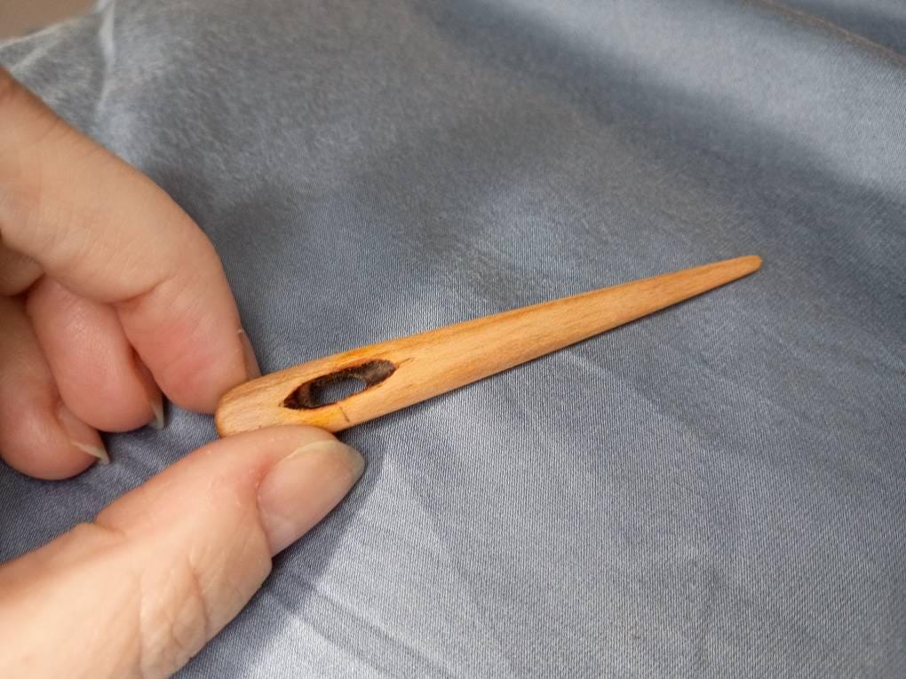 Cherry wood needle for nalbinding, tapestry weaving, or other types of yarn-work. Price is for one needle similar to those pictured.